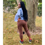 The barbecue brown cargos are Super stylish. Update your wardrobe this season with these cargo trouser featuring elasticated waist band. For an evening style dress them up with heels & a bodysuit.