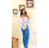 Summer exclusive white lace flare bardot top. Looks great with a pair of jeans or a skirt; this look can be dressed up or dressed down versatile is essential.